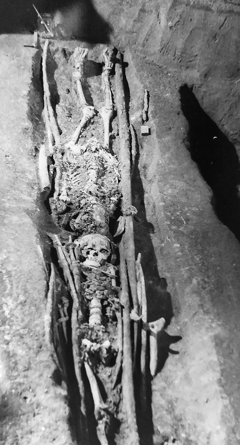 Fig. 1. The double burial of adolescents at the Sungir site (north view). Photo from the personal archive of O.N. Bader. Scientific and Subject-Field Archive of the Institute of Archaeology of the RAS