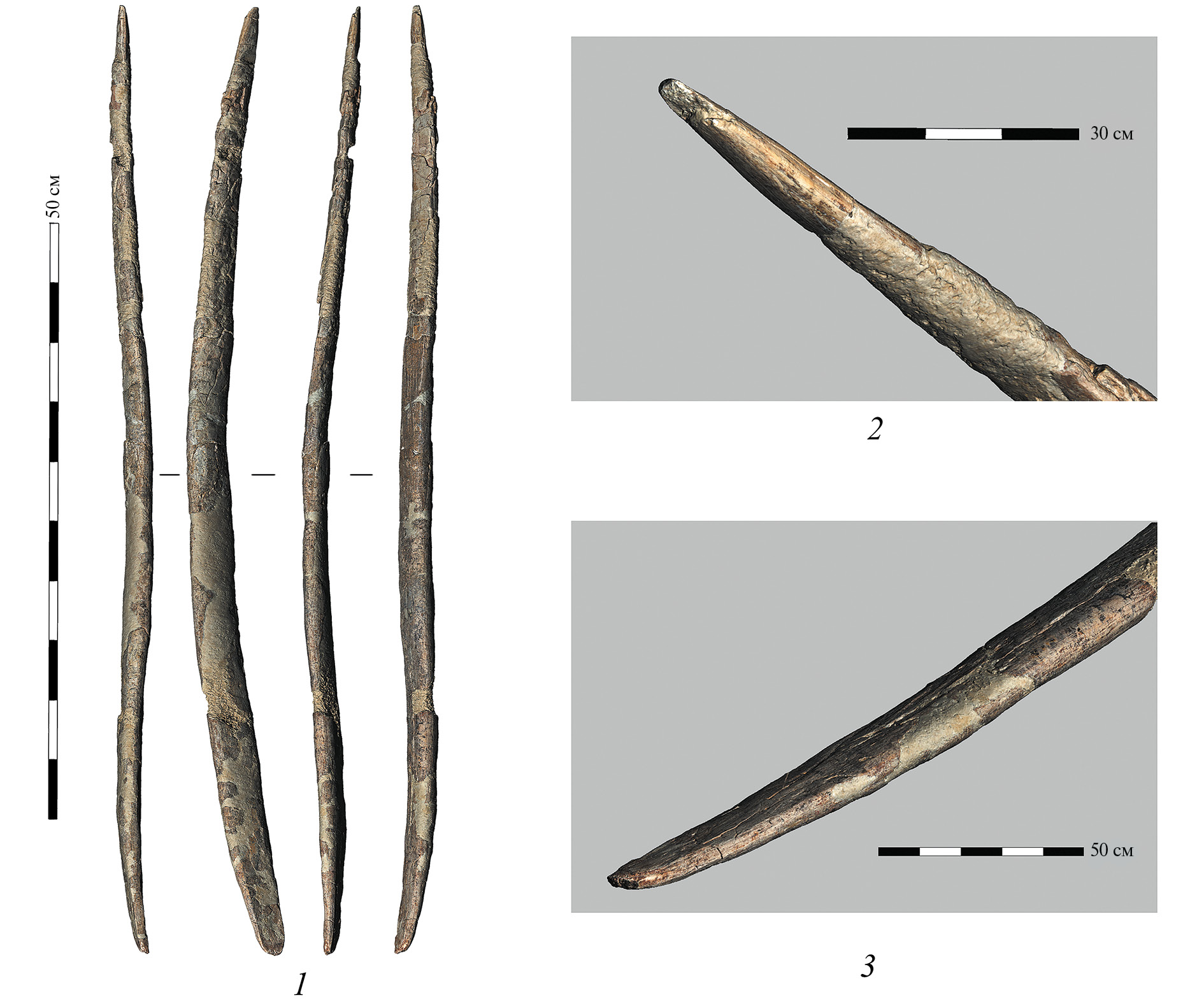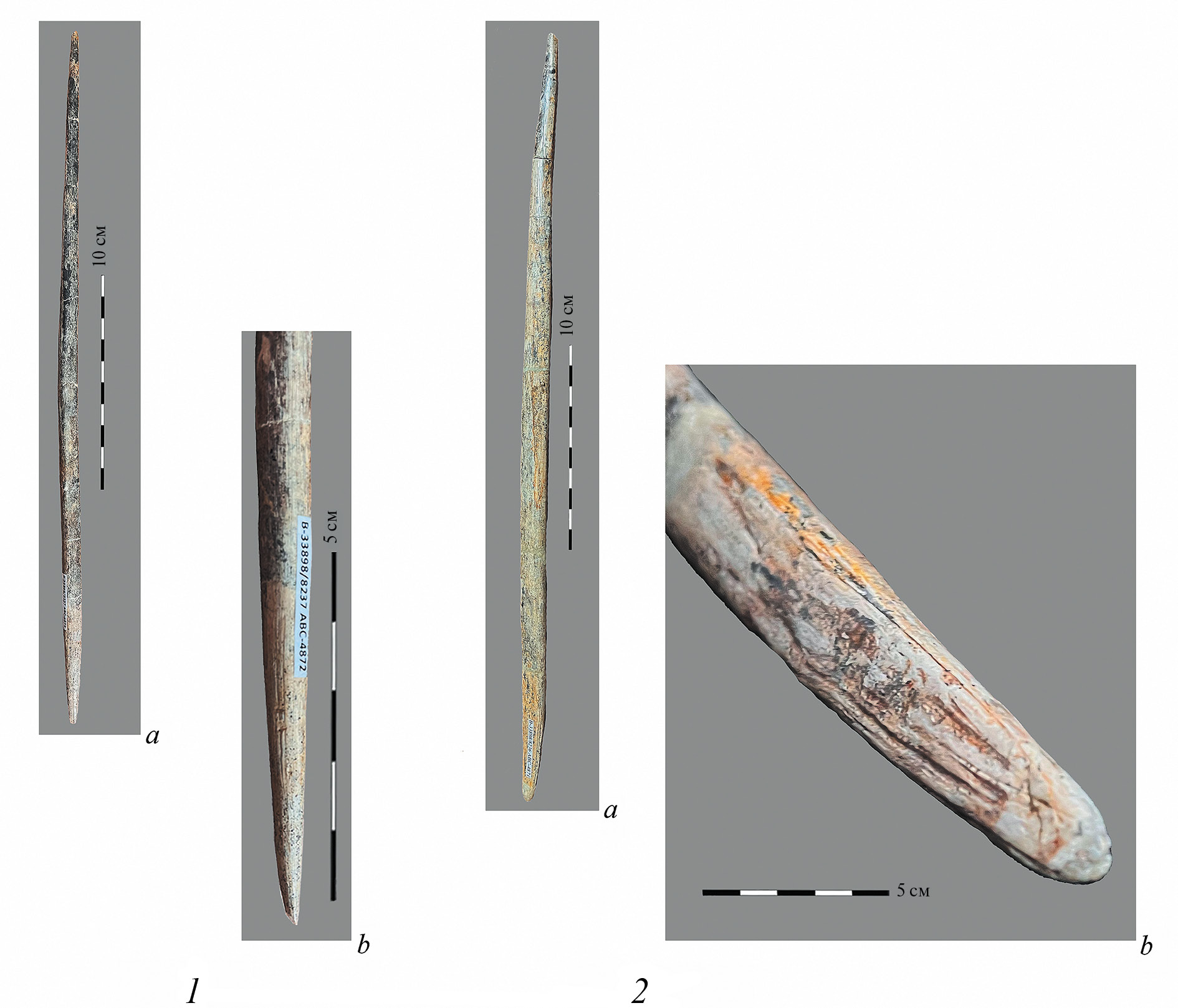 Fig. 2. Weapons made of mammoth tusk found in the double burial. Hereinafter – the State Vladimir-Suzdal Museum-Reserve