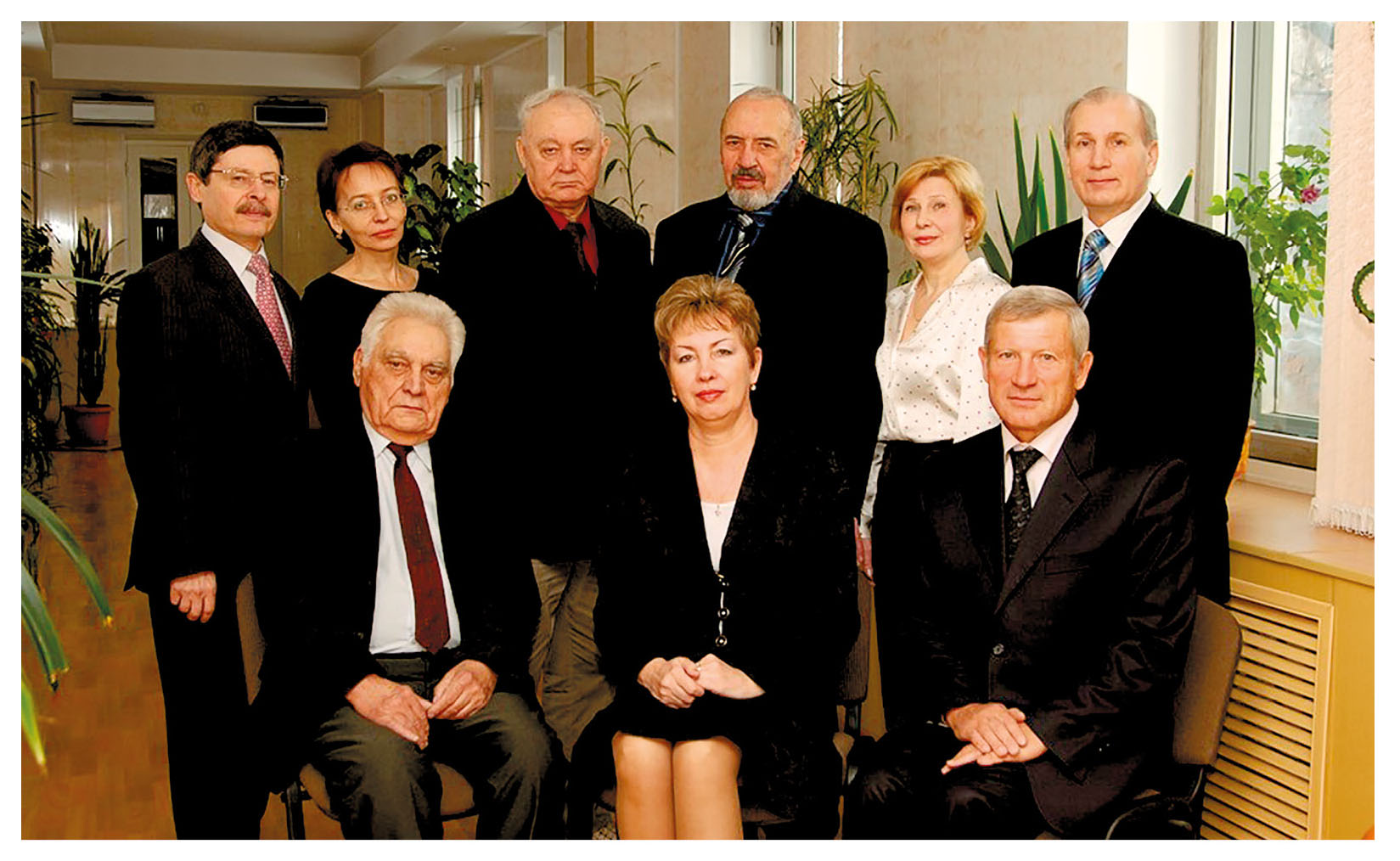Ведущие ученые и специалисты первого поколения ДНЦ ФПД (2010 г.), слева направо: в первом ряду – акад. РАН М. Т. Луценко, к. м. н. Т. В. Смирнова, акад. РАН В. П. Колосов; во втором ряду – чл.- корр. РАН Ю. М. Перельман, д. м. н. А. Г. Приходько, проф. В. П. Самсонов, проф. А. В. Леншин, проф. Н. Н. Вавилова, проф. Л. Г. Манаков