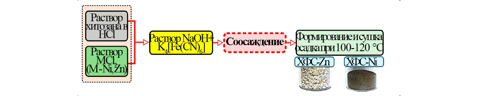 В этом контексте такие решения, как, в частности, методы синтеза сорбентов, отличающихся простотой получения и низкими энерго- и трудозатратами, приобретают немаловажное значение. К примерам подобного подхода можно отнести получение магнитных хитозансодержащих сорбентов в одну стадию путем осаждения аммиаком из растворов ХТЗ и солей прекурсоров, а также получение ферроцианидсодержащих хитозановых сорбентов в одну стадию.
