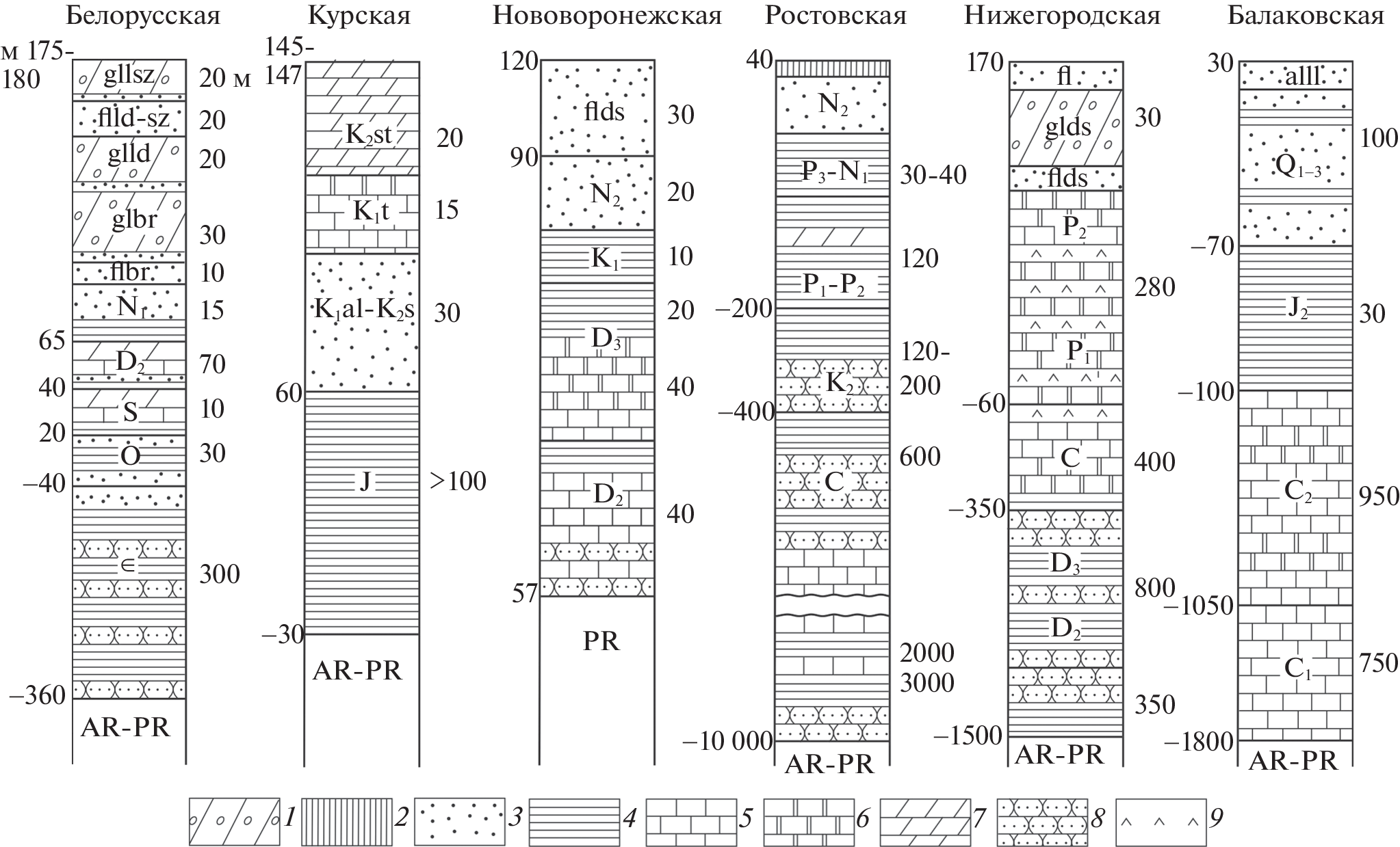 - Makarova, N.V., Makeev, V.M., Sukhanova, T.V., Dorozhko, A.L., Korobova, I.V., Karfidova, E.A. Noveishaya tektonika i geodinamika yugo-zapadnogo kryla Voronezhskoi anteklizy [Recent tectonics and geodynamics of the southwestern flank of the Voronezh anteclise]. Vestnik Moskovskogo universiteta, Ser. 4. Geologiya, 2015, no. 1, pp. 10–19. (in Russian)