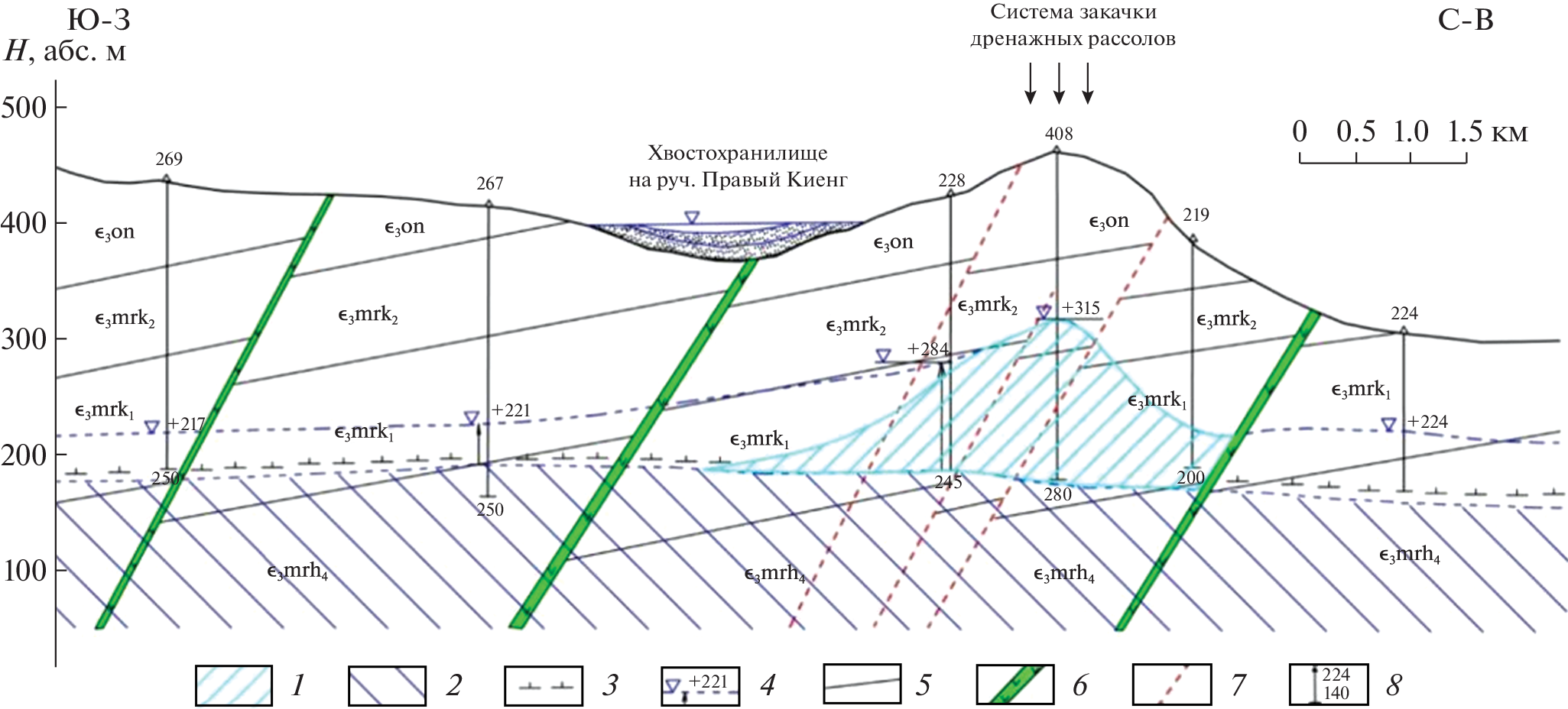 - Yannikov, A.M., Zyryanov, I.V., Korepanov, A.Yu., Struchkova, A.S. Dinamika i prognoz izmeneniya gidrodinamicheskogo rezhima nizhnekembriiskogo vodonosnogo kompleksa v predelakh Daldynskoi fleksury [Dynamics and forecast of changes in the hydrodynamic regime of the Lower Cambrian aquifer within the Daldynskaya flexure]. Gornyi informatsionno-analiticheskii byulleten' (nauchno-tekhnicheskii zhurnal), 2022, no. 9, pp. 60–73. (in Russian)
