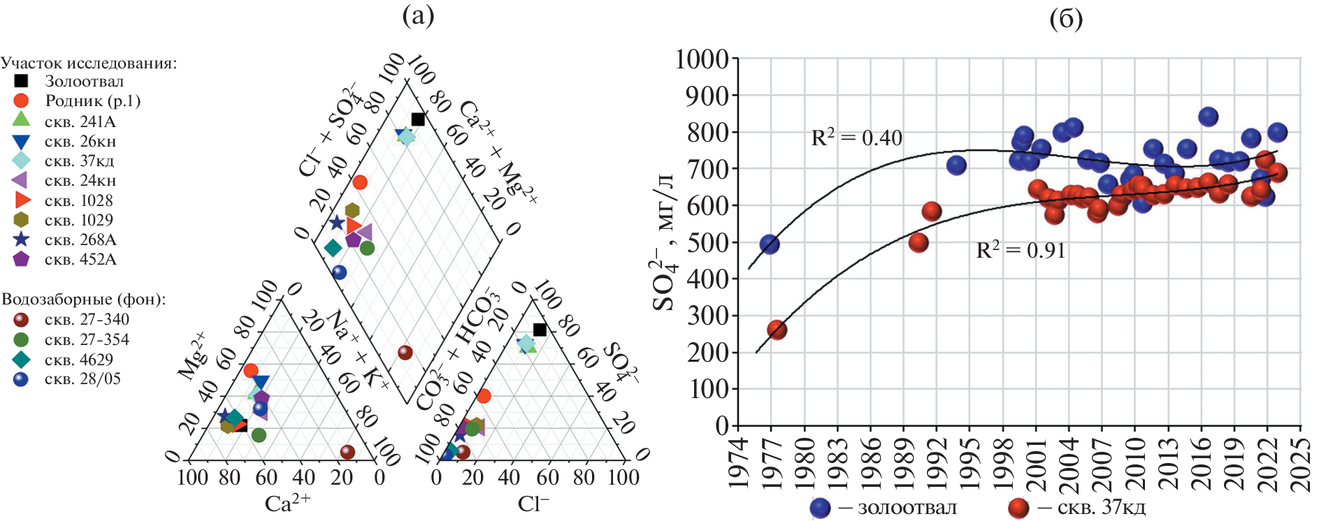 The article provides an assessment of the current state of groundwater and shows the dynamics of its transformation based on the analysis of geoenvironment monitoring results for 2008–2022. The geological environment monitoring program included hydrodynamic and hydrogeochemical observations on the Chita thermal power plant № 1 ash dump territory placed in the west of the city. Regime observations were carried out over the aquifer of the Lower Cretaceous sediments of the Doronin formation using hydrogeology boreholes. The hydrodynamic data correlation analysis indicates the relationship of groundwater levels in boreholes located at a considerable distance from the ash dump with the water level in the nearest borehole. The expansion of technogenic object influence zone in the southwest direction is confirmed by this circumstance, together with the appearance of an ascending spring and the previous studies results of the filtration properties of soils which lie at the ash dump bowl base. As revealed earlier, the ash dump appeared to be the source of significant contamination of groundwater in this area. Nowadays, the polluted area is estimated approximately at 12 km2. The concentrations of sulfates, boron, total dissolved solids, as well as total hardness exceed the norms for drinking water within the area of about 12 km2 in the boreholes on the filtration flow route in the southeast direction from the ash dump. The chemical composition of water taken from boreholes in the southwest direction is currently close to the background values of the water quality indices for the Chita-Ingoda intermountain artesian basin. Meanwhile, the composition of the spring located 1 km southwest from the third ash dump bowl indicates worsening of groundwater quality. As proceeds from the study performed, the operation of the third ash dump bowl will create conditions for the spread of the groundwater contamination front in a new direction with flooding of previously unaffected areas.