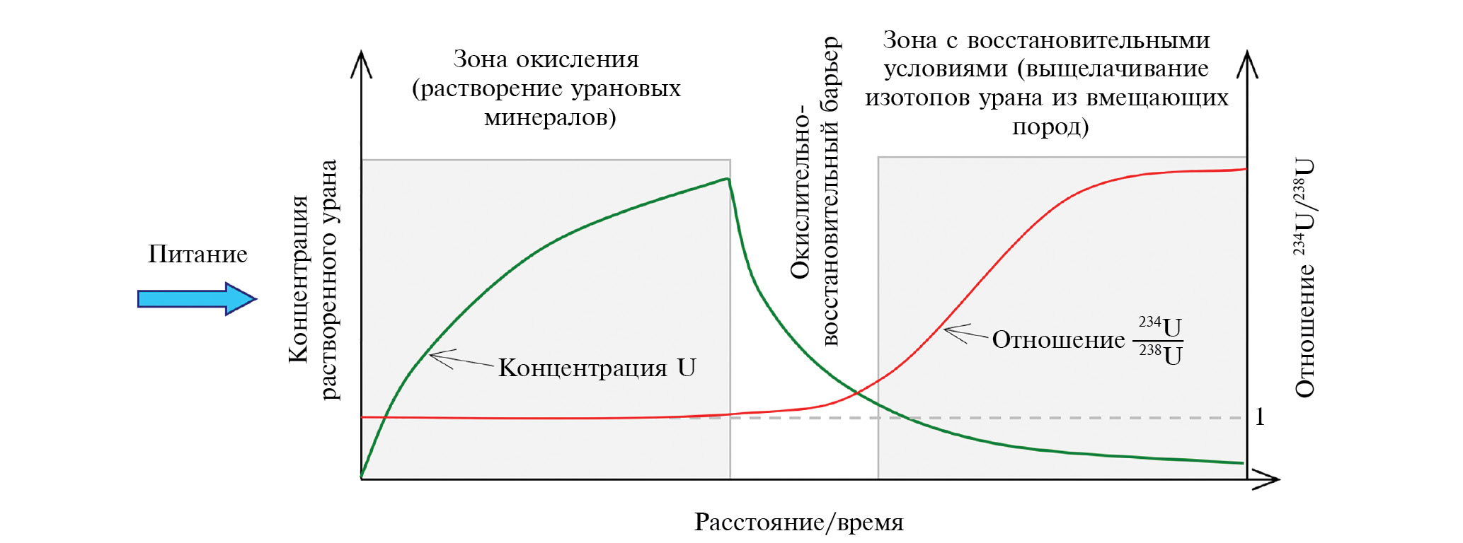 Общепринято, что избыточное, по сравнению с равновесным, обогащение подземных вод ураном-234 может быть обусловлено двумя типами процессов.