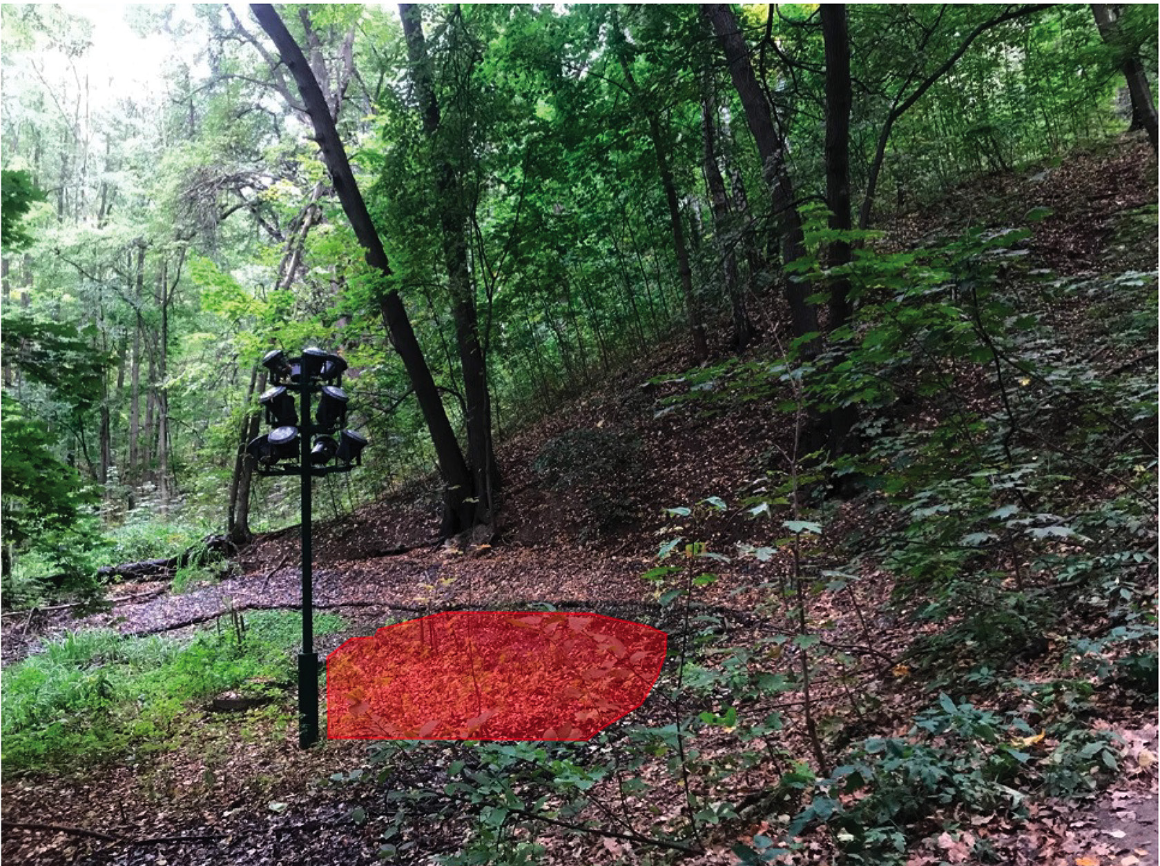 Рис. 3. Разгрузка подземных вод (выделено красным) у подножия склона Воробьевых гор.