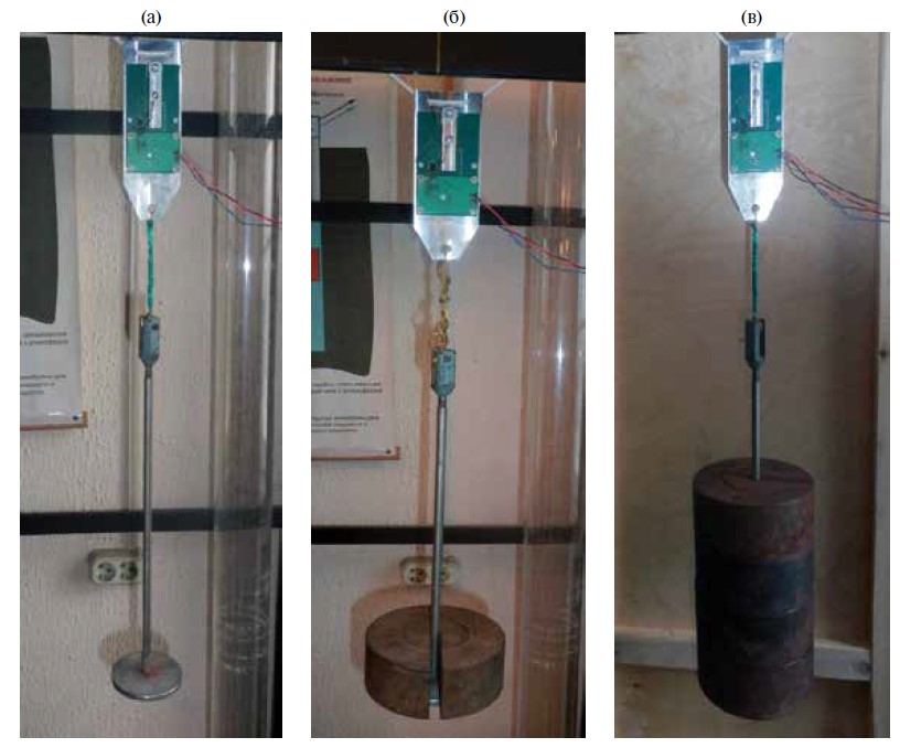 Рис. 3. Испытательный стенд ДКЦ Пластина: а – без нагрузки, б – с нагрузкой 4 кг, в – с нагрузкой 16 кг.
