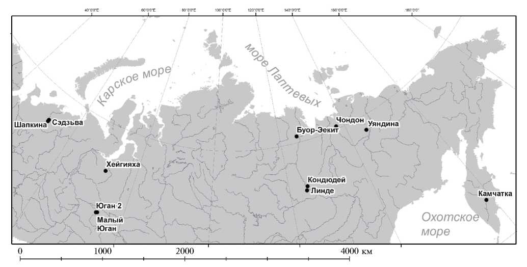 Шапкина, Сэдзьва | Хейгияха | Юган2, Малый Юган | Линде | Буор-Эекит | Кондюдей | Чондон | Уяндина | Камчатка | |