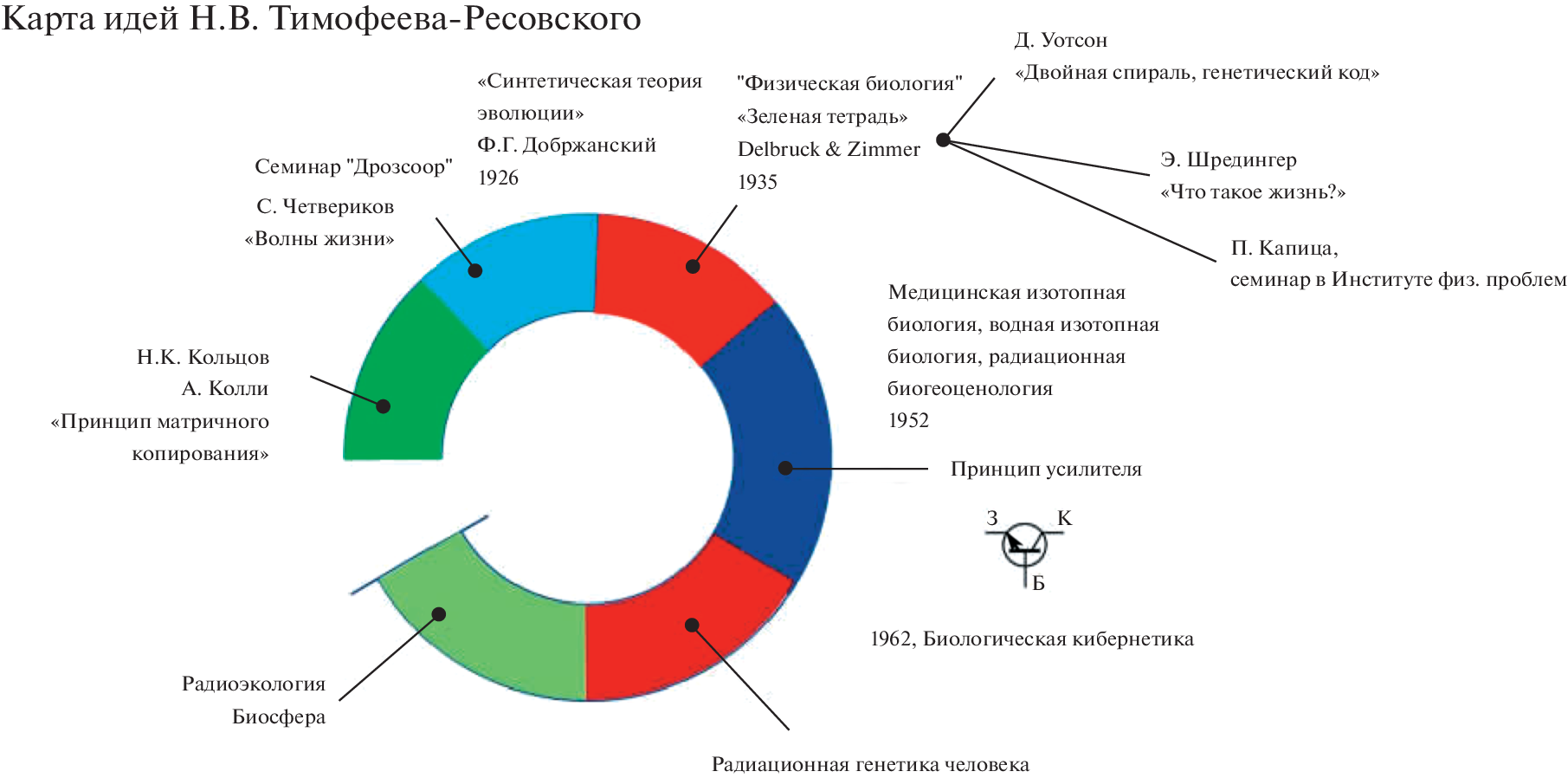 The year 2021 was marked with a significant date – 100 years ago, brilliant radiobiologist and geneticist N.V. Timofeeff-Ressovsky started his scientific work. Among the new directions developed by him from 1921 to 1981 were physical biology, basic principles of genetic engineering, amplifier principle, and population radiobiology. It is noteworthy that many of his ideas were developed in the former Department of Radiation Genetics and General Radiobiology of the Institute of Medical Radiology in Obninsk, which is now called the Experimental Sector of the A. Tsyb Medical Radiological Research Centrе. Our work reveals the interconnections of Timofeeff-Ressovsky’s works with the activities of his contemporaries and productive ideas of today.