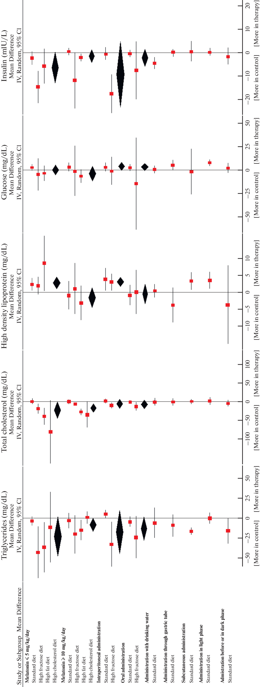 Meta-Analysis of Experimental Studies of the Effect of Melatonin Monotherapy on the Level of Circulation Triglycerides, Cholesterol, Glucose and Insulin Depending on the Diet of Rats