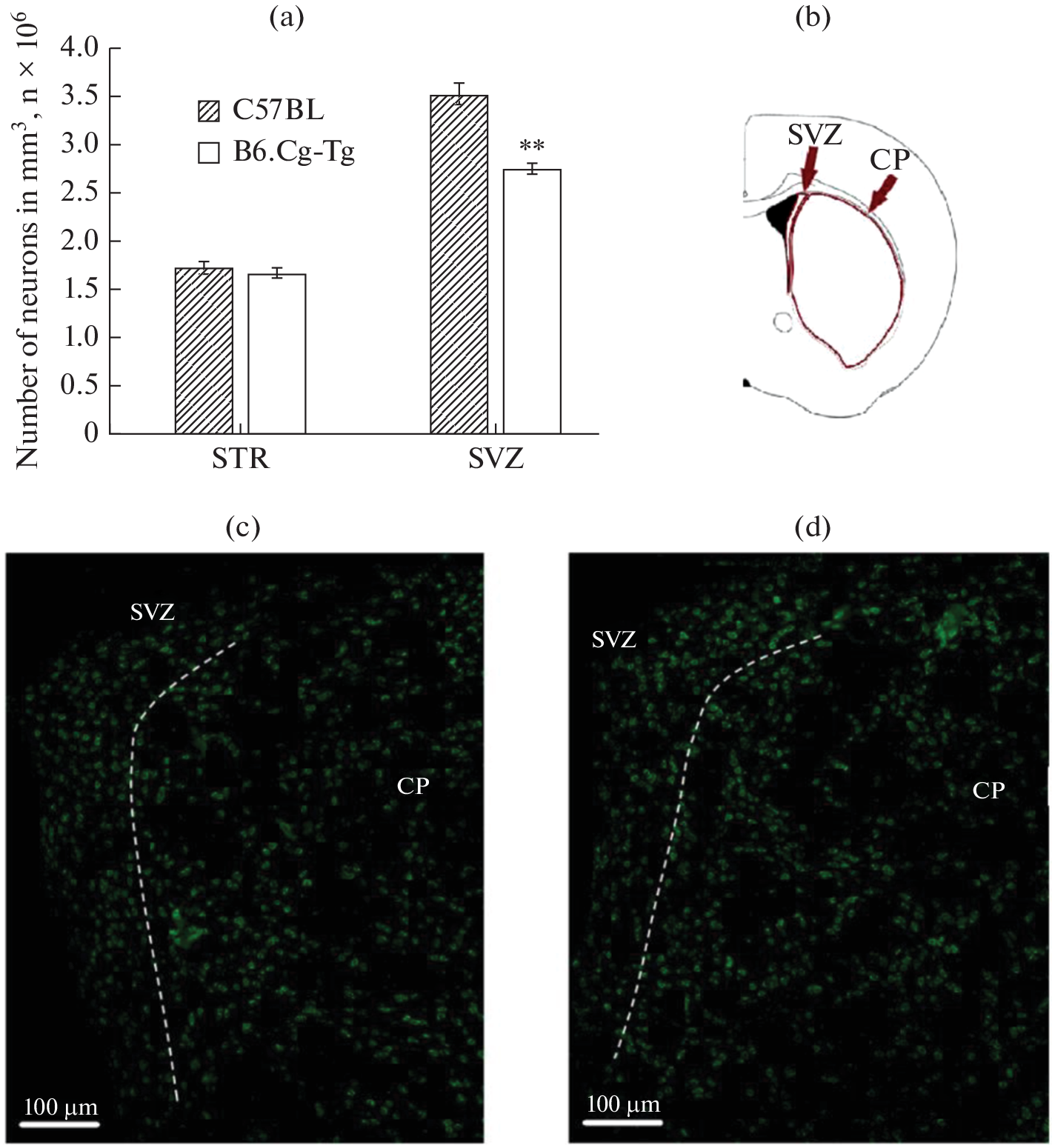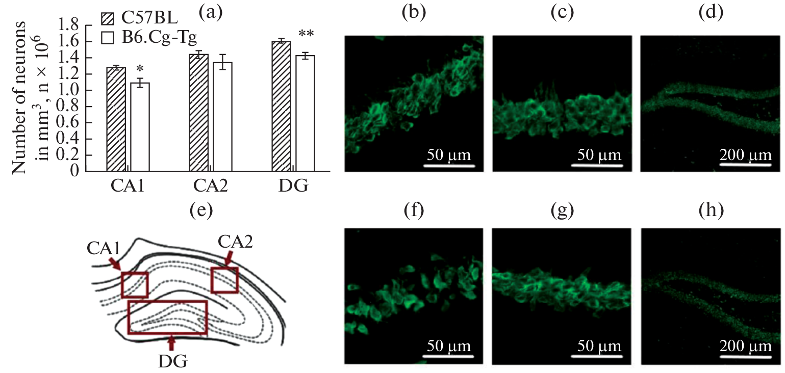 Parkinson’s disease (PD) is a progressive age-related neurodegenerative pathology of the central nervous system, characterized by a selective loss of dopaminergic neurons of the nigrostriatal pathway and by the presence of specific inclusions (Lewy bodies) in dopamine neurons. To study the mechanisms of this pathology and to search for possible ways to correct it, genetic models of PD in mice have been created. Transgenic mice of the B6.Cg-Tg(Prnp-SNCA*A53T)23Mkle/J strain (referred as B6.Cg-Tg further in the text) represent a model of PD, have the A53T mutation in the human alpha-synuclein gene. The aim of this work was to study the locomotor activity and the level of anxiety, as well as the density of neurons in the brain of male B6.Cg-Tg mice at the age of six months. Wild type C57BL/6J mice of the same sex and age were used as controls. The results of the current study demonstrate that B6.Cg-Tg mice are characterized by the high locomotor activity and the low anxiety. Besides, a selective decrease in the density of neurons in the subventricular zone, the substantia nigra, as well as the CA1, CA3, CA4 zones and the granular layer of the dentate gyrus of the hippocampus was observed in these mice. Thus, mice of the B6.Cg-Tg strain at the age of six months only partially correspond to the main pathophysiological signs of PD. Decrease in the density of neurons in the substantia nigra, as well as in the CA1 and CA3 zones of the hippocampus of B6.Cg-Tg mice resemble similar changes in PD. However, these mice demonstrated neither bradykinesia nor high level of anxiety.