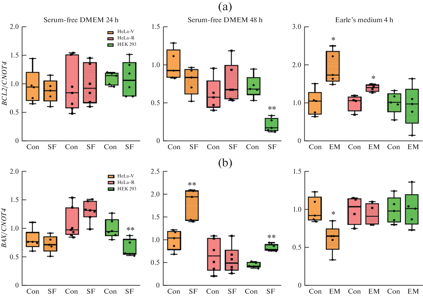 Expression of Apoptosis and Autophagy Genes in HeLa and HEK 293 Cells under Conditions of Nutrient Deprivation