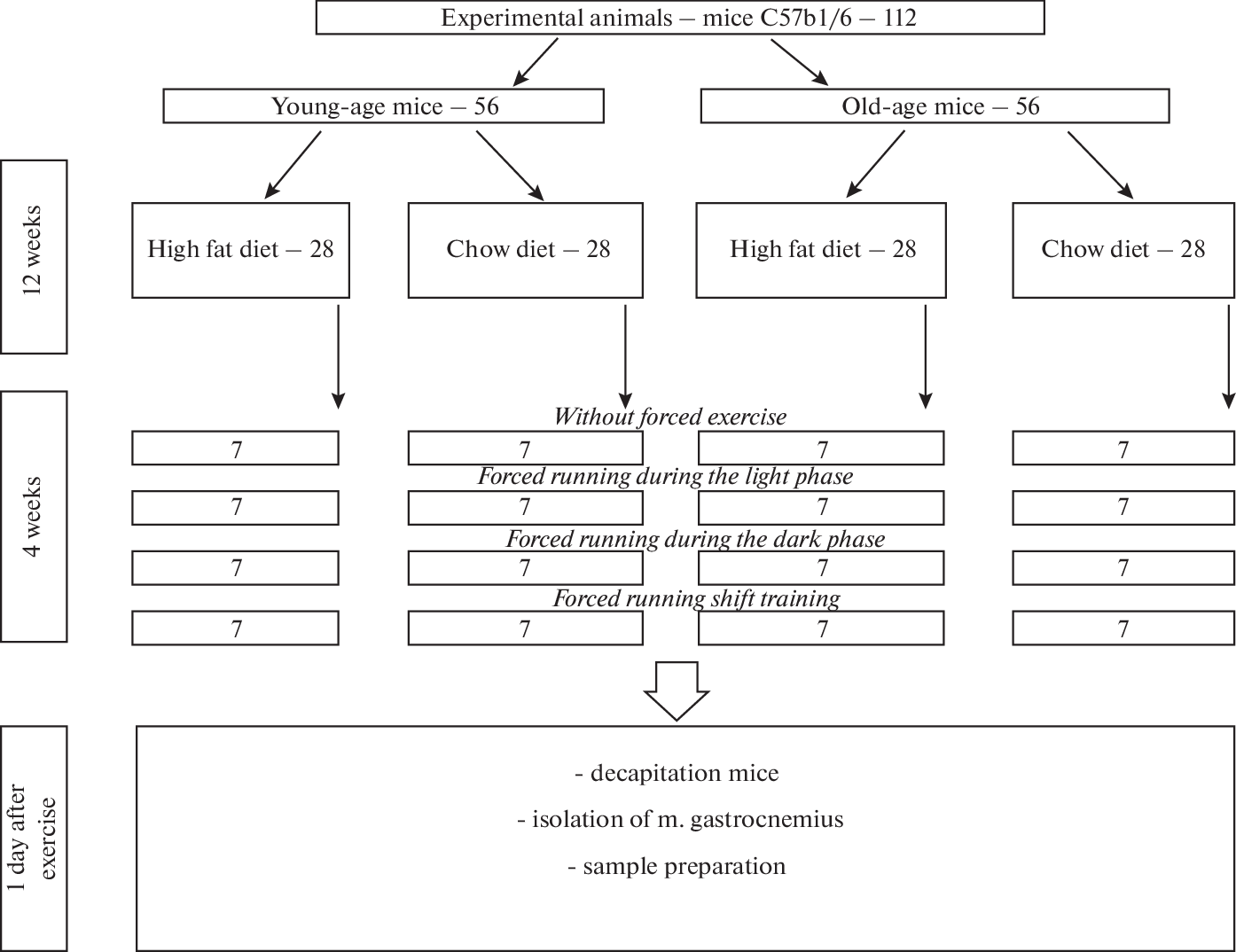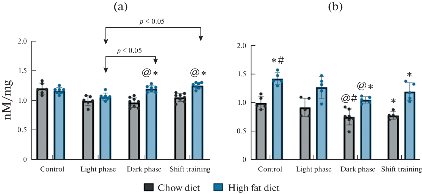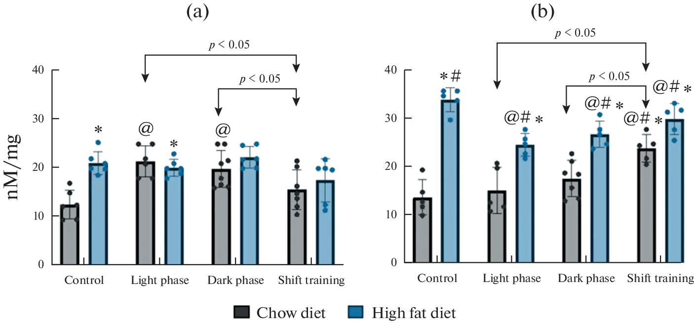 - Zakharova AN, Milovanova KG, Orlova, AA, Dyakova EY, Kalinnikova JG, Kollantay OV, Shuvalov IY, Chibalin AV, Kapilevich LV (2023) Effects of Treadmill Running at Different Light Cycles in Mice with Metabolic Disorders. Int J Mol Sci 24: 15132. https://doi.org/10.3390/ijms242015132