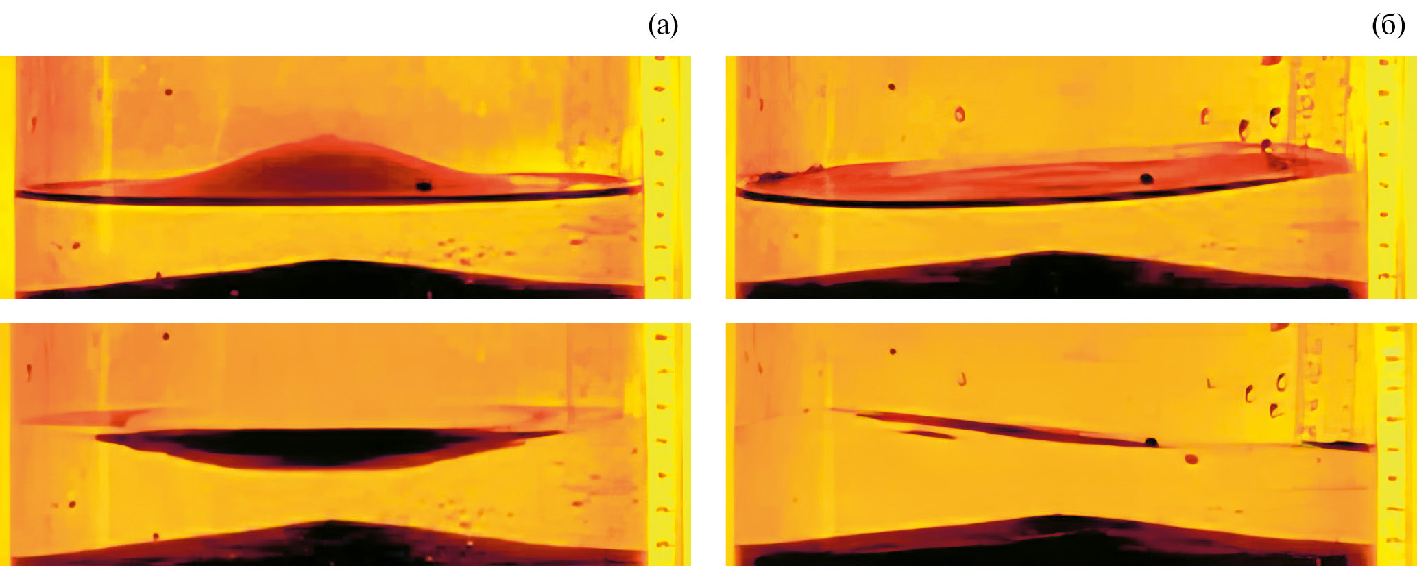 Волновая картина регистрировалась цифровой камерой Canon PowerShot SX50HS (скорость видеосъемки 30 и 120 кадров в секунду). Разрешение видеоизображения составляло 0,15 мм/пиксель. Последующая обработка видеокадров производили при использовании программы ImageJ. Все эксперименты проводили при комнатной температуре 21–22 °C.