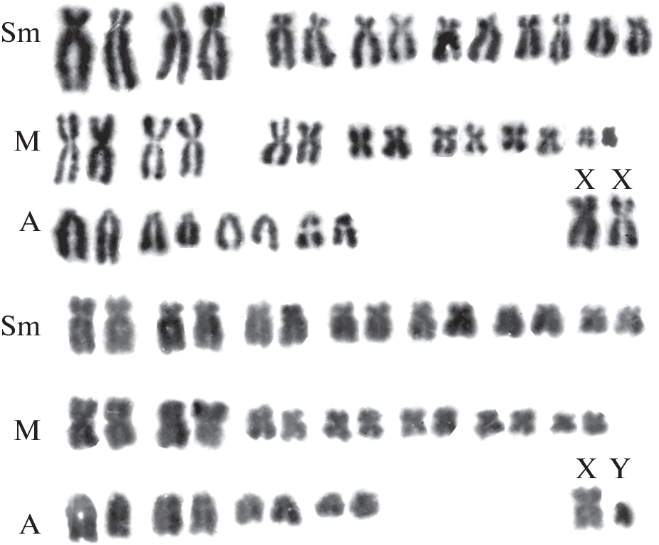 На основании обзора публикаций и дополнительного собственного материала проведена ревизия первоописания кариотипа соболя Martes zibellina, представлены данные о митотических метафазных хромосомах самки и самца этого вида и сравнение их наборов с таковыми у близко родственных видов рода Martes. Также приведено описание синаптонемного комплекса (СК) в ранней – средней профазе мейоза сперматоцитов соболя. Сравнительный анализ подтвердил основные цитогенетические показатели соболя и куниц (2n = 38, NFa = 64–68, X – средней величины субметацентрик, а Y – самый мелкий акро- субмета- или метацентрик). Эти характеристики мало пригодны для разработки внутривидовой таксономии соболя, однако могут быть использованы для выявления филогенетических связей на видовом и родовом уровнях, а также для выяснения последствий природной гибридизации близких видов рода Martes.