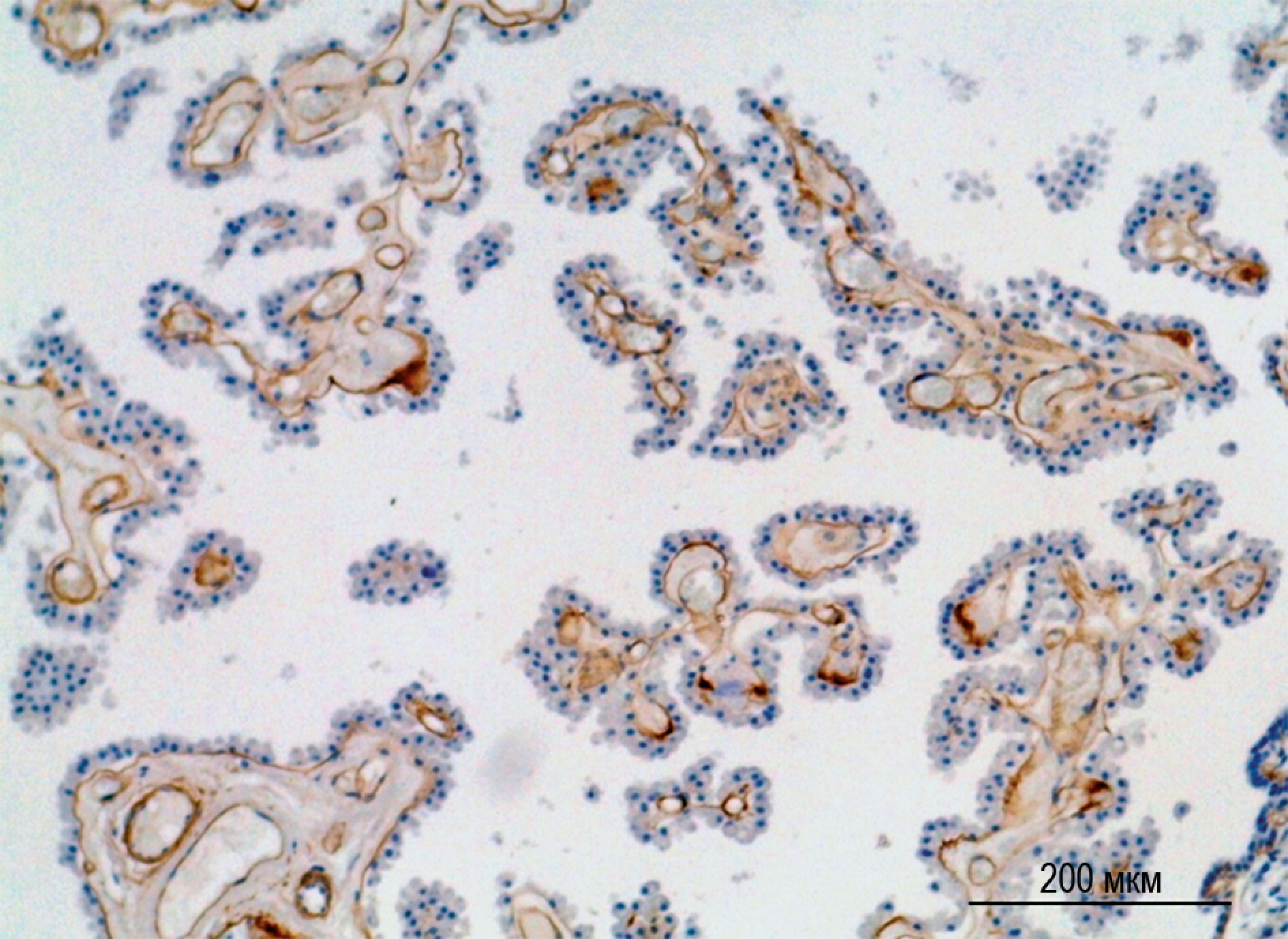 Despite the fact that separate studies of the vascular plexus have been conducted in recent years using antibodies to various types of collagen, a detailed analysis of the organization of the basement membrane in the villi of this organ has not yet been performed.