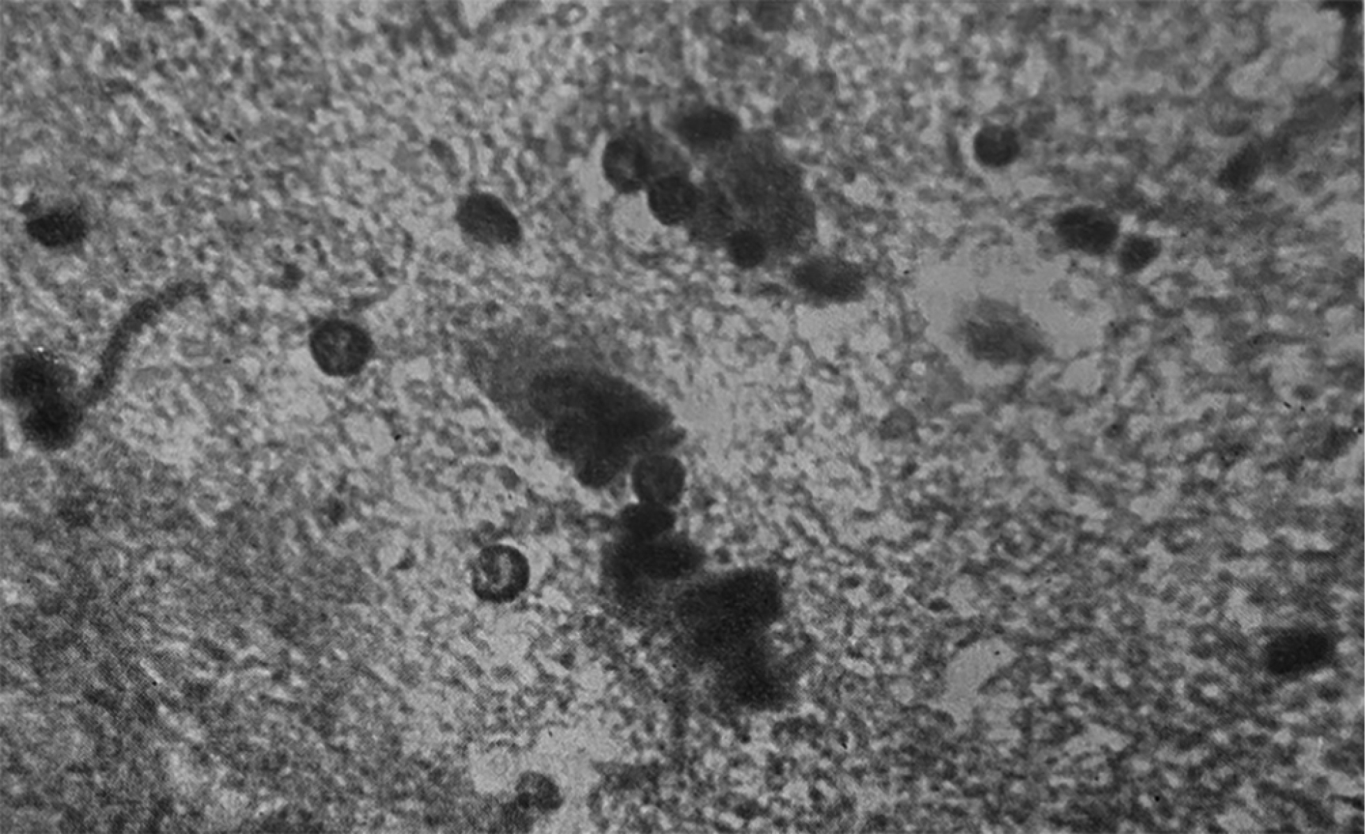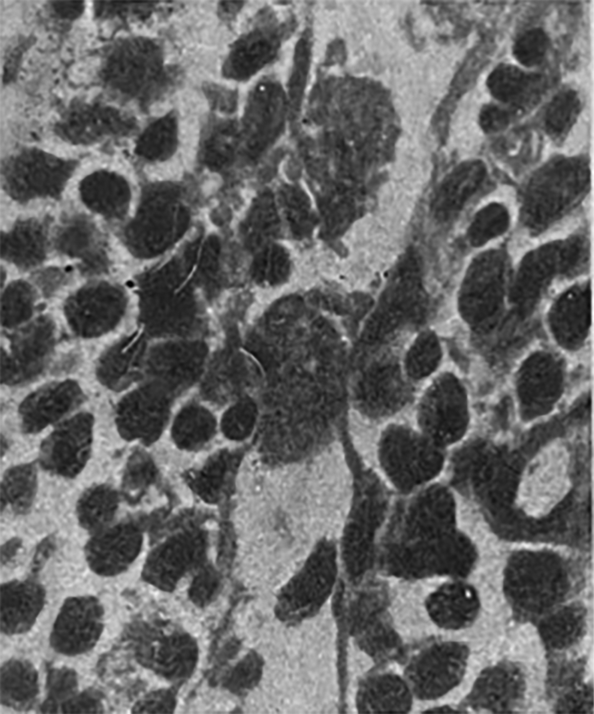Fig. 5. Neuronophagia in acute cerebral hypoxia [6].