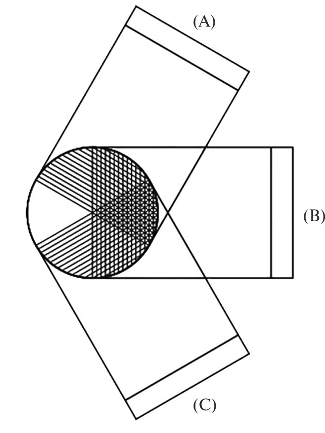 Здесь круг – объект познания (предмет конституционного права); линии А, В, С – знания, фиксирующие его отдельные стороны в разных исследованиях; заштрихованные секторы – «объективное содержание», выделяемое при этом; незаштрихованные – части объекта, не отражаемые в данных исследованиях.