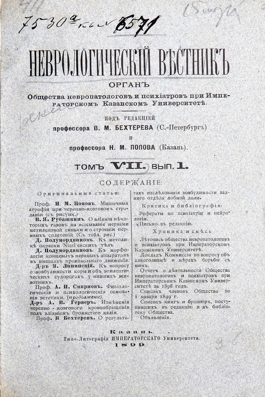 Лѣтопись общества невропатологовъ и психіатровъ при императорскомъ казанскомъ университетѣ. Протоколъ засѣданія 15 ноября