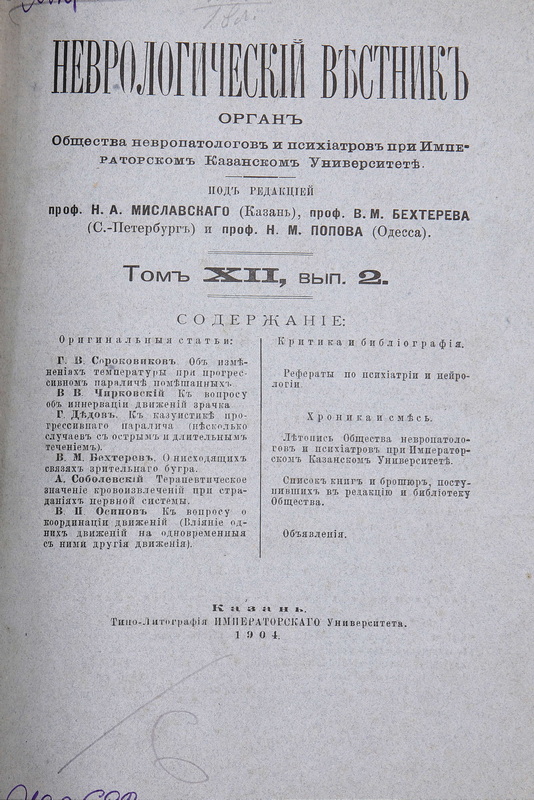 Prof. W. Bechterew. Heilgymnastische Behandlung im Bade. (Centralblatt für Nervenheilkunde und Psychiatrie. 15 März 1904). Леченіе врачебной гимнастикой въ ваннахъ. (Обозрѣніе психіатріи, неврологіи и экспериментальной психологіи. Сентябрь 1903 г.)