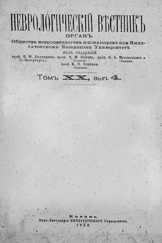 Лѣтопись Общества невропатологовъ и психіатровъ при Императорскомъ Казанскомъ Университетѣ. Протоколъ очередного VІ-го засѣданія Общества 6 ноября 1913 года