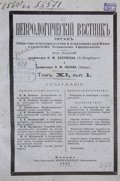 Летопись общества невропатологовъ и психіатровъ при Императорскомъ Казанскомъ Университетѣ. Том 12, № 3 (2021)