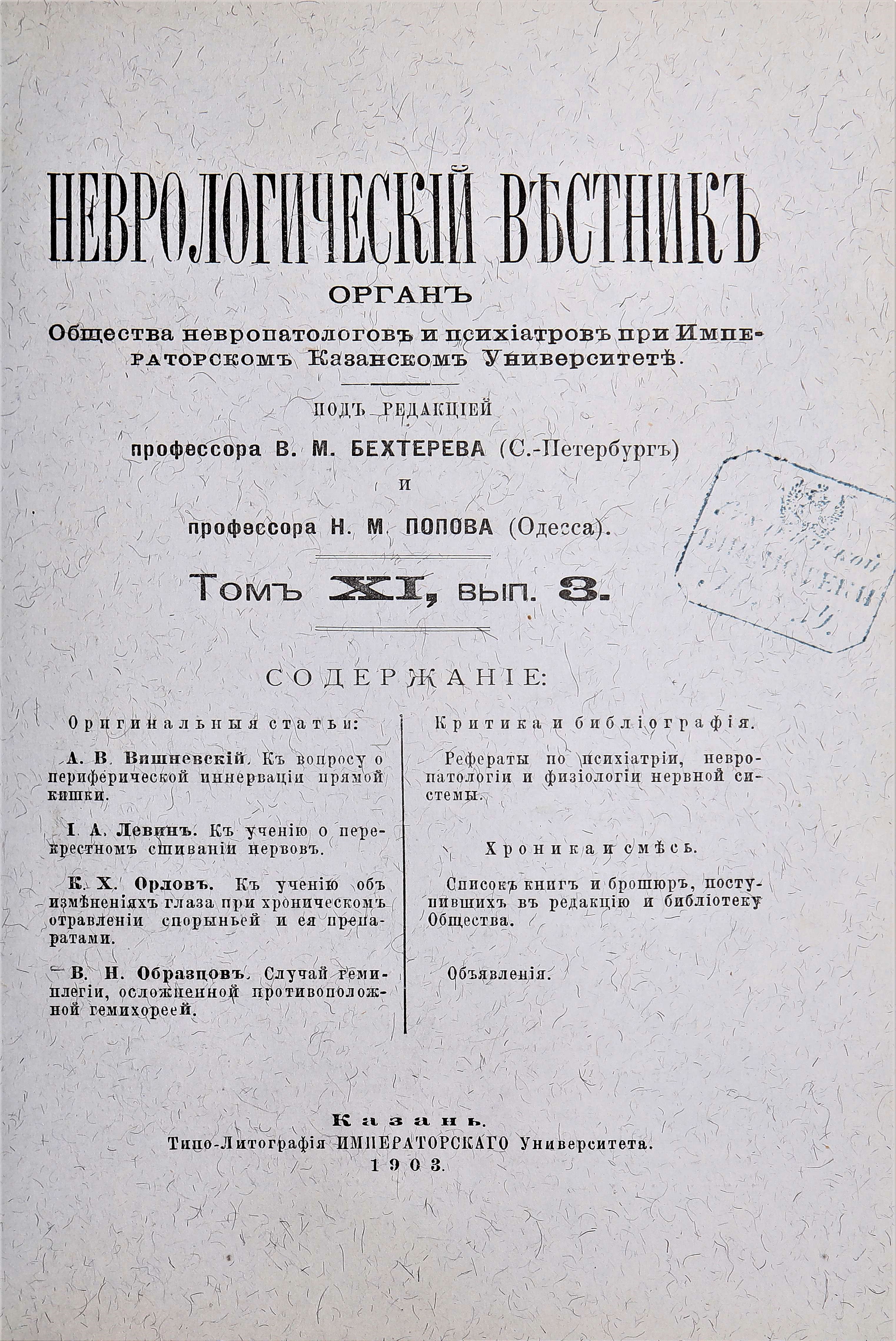 Назначенный на каѳедру психіатріи Казанскаго Университета ординар, проф. П. И. Ковалевскій 6 го сентября приступилъ къ чтенію лекцій 5-му курсу. Вступительная лекція на тему: «О расторженіи брака вслѣдствіе душевной болѣзни одного изъ супруговъ собрала многочисленную публику въ актовое зало Университета.