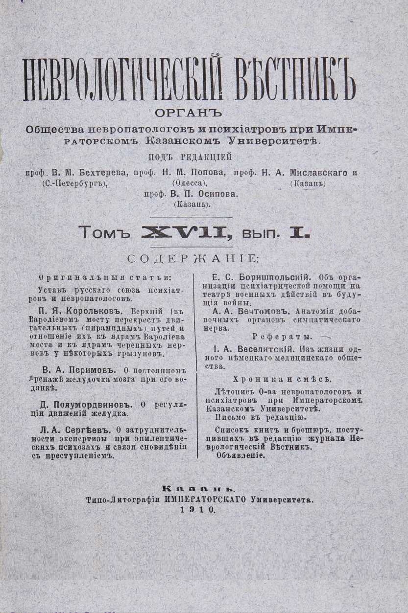 Лѣтопись общества невропатологовъ и психіатровъ при Императорскомъ Казанскомъ Университетъ от 25 ноября 1909 года