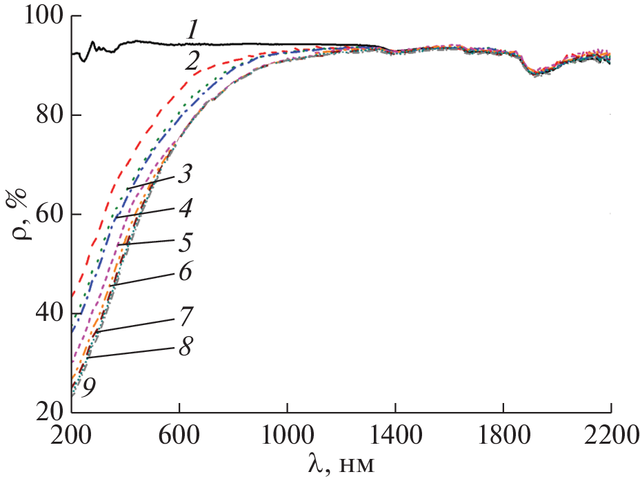 Выполнен сравнительный анализ изменений спектров диффузного отражения ρλ и интегрального коэффициента поглощения в области 0.2–2.2 мкм после раздельного и последовательного облучения протонами с энергией 5 кэВ и квантами солнечного излучения порошка сульфата бария, модифицированного наночастицами диоксида кремния mBaSO4/nSiO2 с регистрацией спектров после каждого периода облучения в вакууме в области облучения (in situ). Интегральный коэффициент поглощения солнечного излучения модифицированного пигмента mBaSO4/nSiO2 до облучения составляет 0.048, что в несколько раз меньше, чем у широко используемого во всех странах пигмента ZnO. Установлено, что коэффициент аддитивности, рассчитанный по результатам последовательного и раздельного облучения порошка mBaSO4/nSiO2 при увеличении флуенса протонов с энергией 5 кэВ уменьшается от 7.5 до 1.052 раз. Оценка изменений коэффициента аддитивности при воздействии спектра заряженных частиц на геостационарной орбите (как одной из наиболее используемых и с наиболее жесткими радиационными условиями), показала, что неаддитивность раздельного и последовательного действия протонов и квантов солнечного излучения на пигмент для терморегулирующих покрытий mBaSO4/nSiO2 при таких параметрах облучения будет сохраняться в течение 1.27 года.