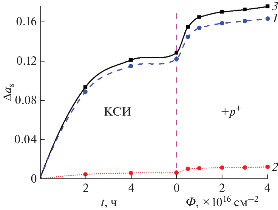 A comparative analysis of changes in the diffuse reflectance spectra ρλ and the integral absorption coefficient in the region of 0.2–2.2 μm after separate and sequential irradiation with 5 keV protons and solar radiation quanta of a barium sulfate powder modified with silicon dioxide nanoparticles mBaSO4/nSiO2 was performed with registration of the spectra after each period of irradiation in vacuum in the area of irradiation (in situ). The integrated solar radiation absorption coefficient of the modified mBaSO4/nSiO2 pigment before irradiation is 0.048, which is several times lower than that of the ZnO pigment widely used in all countries. It has been found that the additivity coefficient calculated from the results of sequential and separate irradiation of the mBaSO4/nSiO2 powder decreases from 7.5 to 1.052 times with an increase in the fluence of protons with an energy of 5 keV. An assessment of the changes in the additivity coefficient under the influence of the spectrum of charged particles in the geostationary orbit (as one of the most used and with harsh radiation conditions) showed that the non-additivity of the separate and sequential action of protons and solar radiation quanta on the pigment for thermal control coatings mBaSO4/nSiO2 at such irradiation parameters will be kept for 1.27 years.