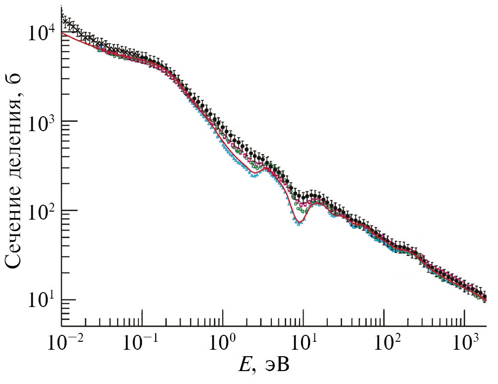 Расхождения между оценками резонансных параметров в библиотеках РОСФОНД-2010 и ENDF/B-VII.1 привели к соответствующим отличиям усредненных значений в области энергии ниже 30 эВ. Выявленные расхождения экспериментальных данных, особенно между результатами экспериментов, выполненных с помощью СВЗ, стимулировали новые измерения сечения деления на спектрометре по времени замедления нейтронов в свинце СВЗ-100. Важно подчеркнуть, что большую роль в таких измерениях играет изотопическая чистота образцов.