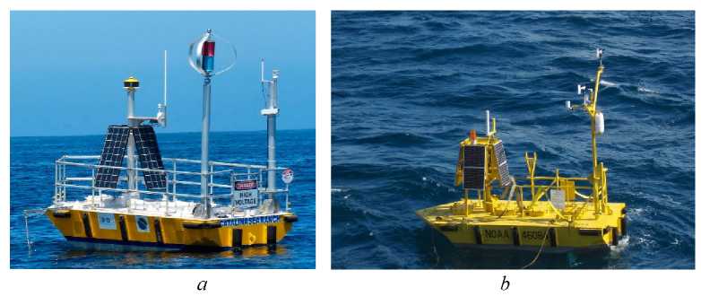 F i g. 1. Offshore floating stations for real-time ocean monitoring owned by the Catalina Sea Ranch Company (a) and the US Coast Guard (b)