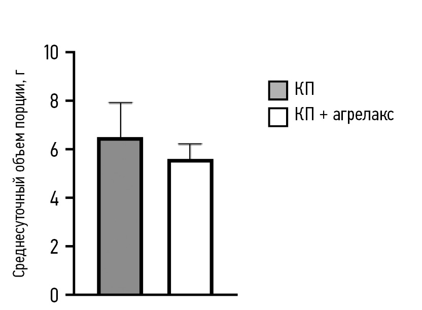 In animals raised under conditions of partial sensory and complete social isolation, the administration of Agrelax did not produce a pronounced effect on reducing the consumption of the chocolate-food mixture (Fig. 5).