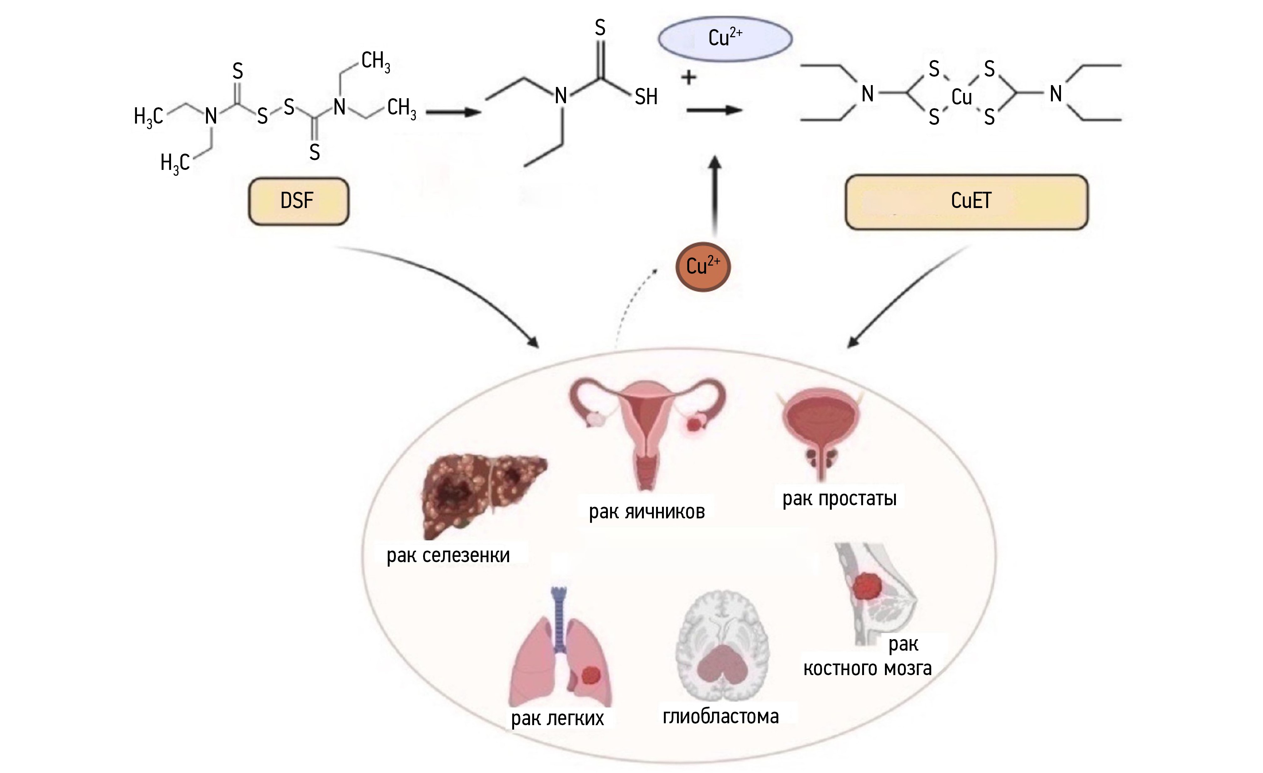 Медь — важнейший микроэлемент в организме человека, функционирует как ключевой каталитический кофактор ферментов в широком спектре биологических процессов, включая митохондриальное дыхание, про- и антиоксидантную защиту и синтез биосоединений. Внутриклеточная концентрация ионов меди поддерживается в относительно узком диапазоне, поскольку даже умеренное повышение может вызвать цитотоксичность и привести к гибели клеток, таким образом, поглощение, распределение и элиминация ионов меди жестко регулируются. Выявленные у людей вызывающие накопление меди генетические мутации были связаны с тяжелыми, потенциально опасными для жизни патологическими состояниями [270]. Таким образом, понимание процесса, посредством которого избыток меди вызывает клеточную токсичность и приводит к гибели клеток, представляет собой важный шаг к пониманию гибели клеток и разработке новых эффективных методов лечения.