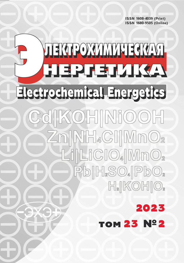 Исследованы электрохимические характеристики отрицательных электродов свинцово-кислотного аккумулятора с добавками углеродных нанотрубок и графена. Показано, что наиболее высокие значения емкостных характеристик электродов были получены при введении в отрицательную активную массу добавки углеродных нанотрубок. Методом импедансной спектроскопии исследованы процессы, происходящие на отрицательном электроде. Путем моделирования получена эквивалентная электрическая схема, адекватно аппроксимирующая полученные частотные зависимости. Рассчитаны элементы предложенной эквивалентной схемы. Установлено, что введение углеродных добавок увеличивает сопротивление R3, связанное с пористой структурой электродов.