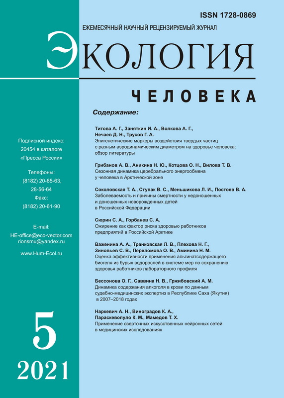 Введение: Избыточное употребление алкоголя в настоящее время признано одной из угроз национальной безопасности Российской Федерации. Сложность оценки объема и модели потребления алкоголя, регистрации и выявления случаев алкоголь-ассоциированных смертей являются причинами недостатка надежных эмпирических данных о вкладе алкоголь-ассоциированных смертей в общую смертность населения. Лица, принимающие решения, должны иметь оценку алкоголь-атрибутивной смертности в каждом субъекте федерации для разработки региональных профилактических программ, где это необходимо. Цель: проанализировать динамику содержания алкоголя в крови и других биологических жидкостях умерших в Республике Саха (Якутия). Методы: Проведена ретроспективная оценка всех (n = 12 036) учетных форм 171/у Государственного бюджетного учреждения Бюро судебно-медицинской экспертизы Министерства здравоохранения Республики Саха (Якутия) за период 2007-2018 годов и сформирована деперсонализированная база данных. Для анализа концентрации алкоголя в крови (моче, мышце) в зависимости от года смерти использовался тест упорядоченных альтернатив Йонкхеера - Терпстра. Для моделирования временных трендов в отношении доли умерших с разными содержаниями алкоголя нами применялись регрессионные модели Пуассона. Результаты: Доля умерших лиц с тяжелым (3,0-5,0 %о) и смертельным (более 5,0 %о) алкогольным отравлением статистически значимо снизилась с 25,3 до 18,0 % (p < 0,001). Также выявлен значимый тренд снижения средней концентрации алкоголя у умерших. Доля умерших с определяемым алкоголем за исследуемый период снизилась на 34,8 %, причем снижение было более выражено среди женщин. Среди умерших с тяжелой и смертельной концентрацией гендерных различий в динамике не обнаружено. Выводы: За изучаемый период наблюдается положительная динамика в области содержания алкоголя в крови умерших в Республике Саха (Якутия). Выявленные тренды были более выражены среди женщин. Интерпретация результатов должна проводиться с осторожностью, принимая во внимание методологические особенности исследования.