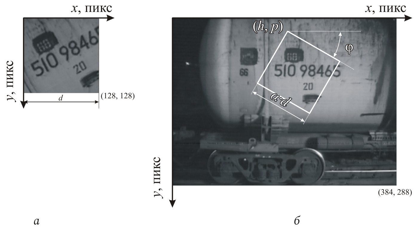 На рис. 1, а показано изображение f(x, y), которое является фрагментом изображения g(x, y). На рис. 1, б на изображении g(x, y) показана область, соответствующая f(x, y).