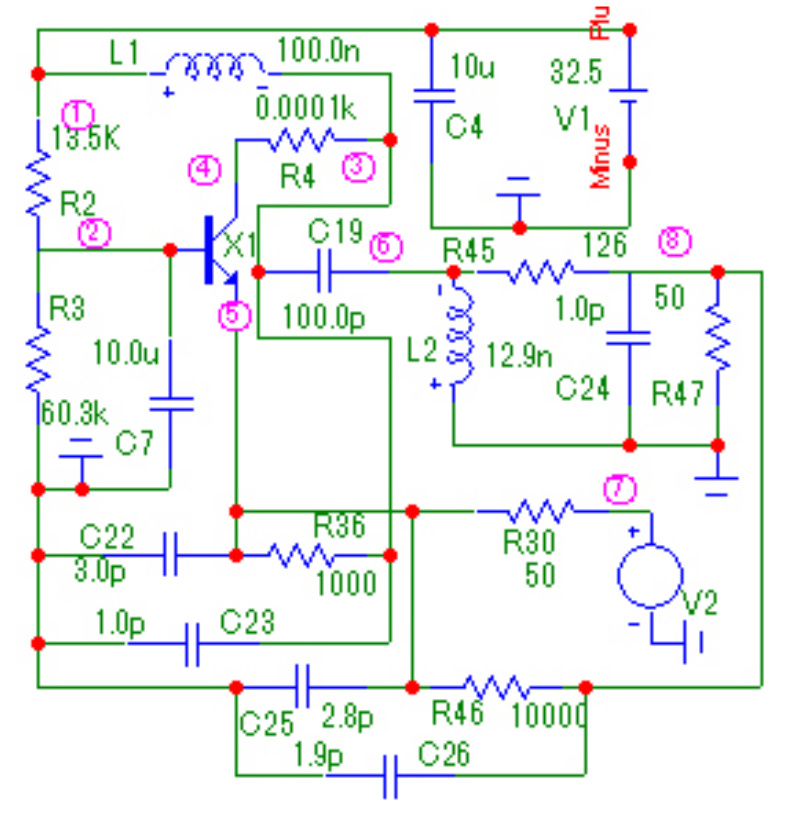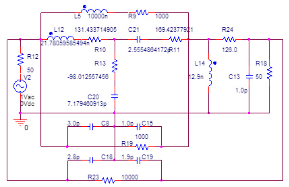 Схема НЧ реализована в виде параллельно соединенных эквивалентной схемы нелинейного элемента и цепи обратной связи из П-образного соединения трех элементов . Схема общей ЦОС построена в виде П-образного соединения на основе трех элементов , а схема ССЧ – на основе П-образного соединения трех элементов .