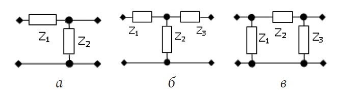 КЧ в виде обратного Г-образного соединения двухполюсников (рис. 4, а):