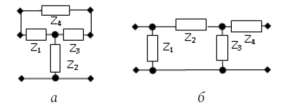 КЧ в виде двух Г-образных соединений двухполюсников (рис. 5, б):