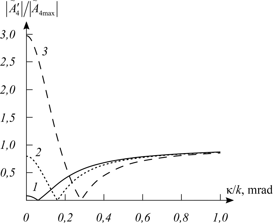 For a nonlinear medium containing nanoparticles, for which the condition is met, the modulus of the spatial spectrum of the object wave has the form of a cutout ring with a diameter of (Fig. 1, curve 2). In this case, the spatial selectivity of FRC can be characterized by the radius and width of the ring Δκ1, determined using the following equation [16; 17]: