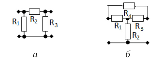 П-образное соединение трех сопротивлений (рис. 4, а):