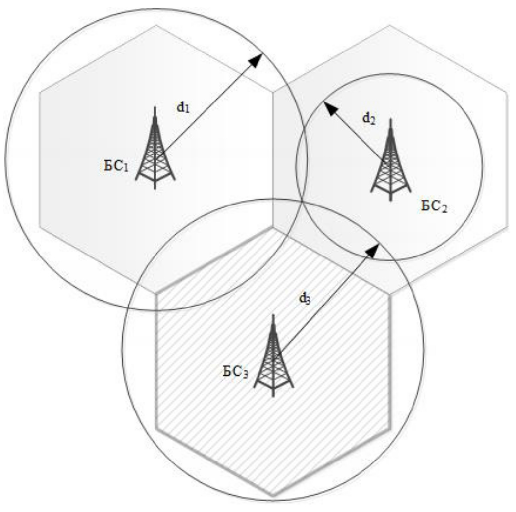 где – координаты i-й БС; – независимая гауссова случайная величина с нулевым математическим ожиданием и дисперсией