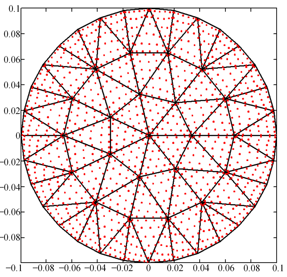 Рис. 4. Вариант представления диска многоугольником S. Точками обозначены узлы численного интегрирования
