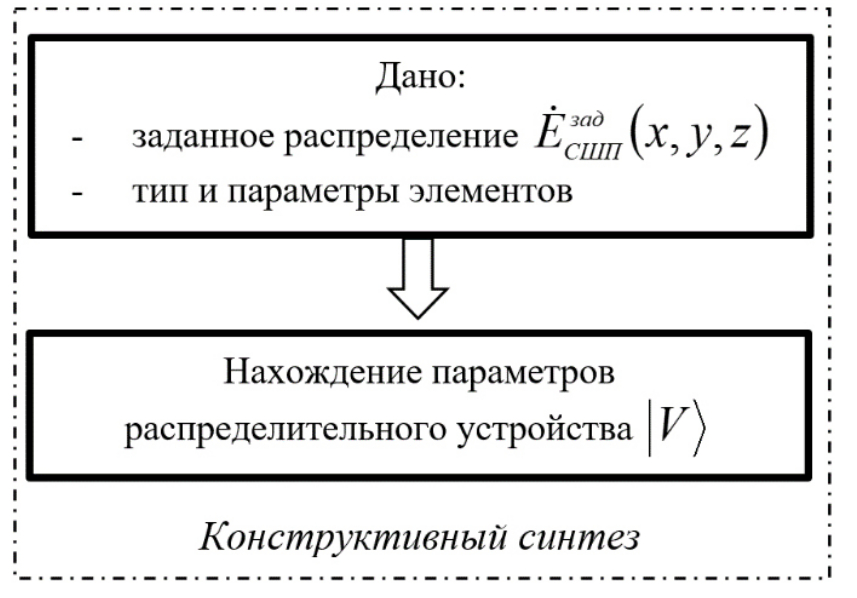 Более рациональным и при этом более простым в реализации представляется подход, основанный на принципах конструктивного синтеза [7–9]. Способ решения задачи конструктивного синтеза показан на рис. 12.