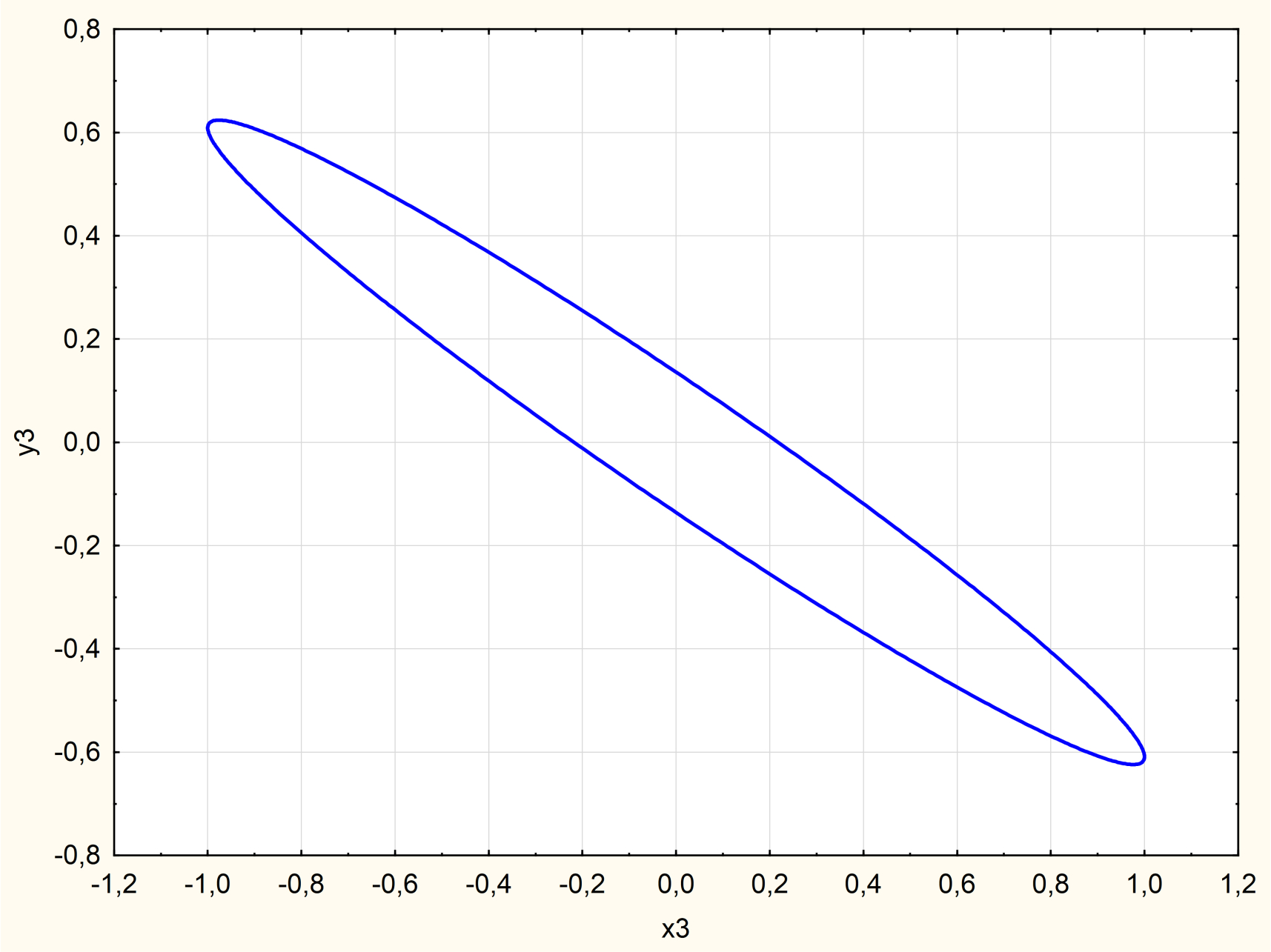 Fig. 6. Conductivity defect. Right polarization. Polarization ellipse g = 46°, ρ = 0,0683, ∆=−1,167