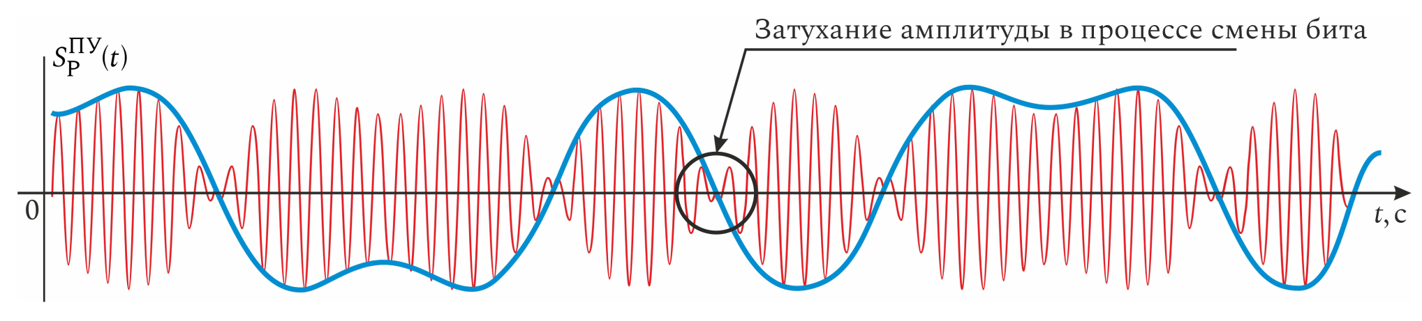 Из рис. 3 видно, что возможна ситуация, когда при изменении фазы на амплитуда несущего колебания будет близка или равна нулю. Это может привести к тому, что будет происходит ошибочное декодирование синхропоследовательности по причине инверсии бит.
