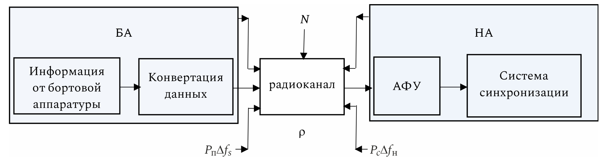 В состав радиолинии входят видео- и радиотракты на беспилотной платформе в виде бортовой (БА) и наземной (НА) аппаратуры (рис. 4).