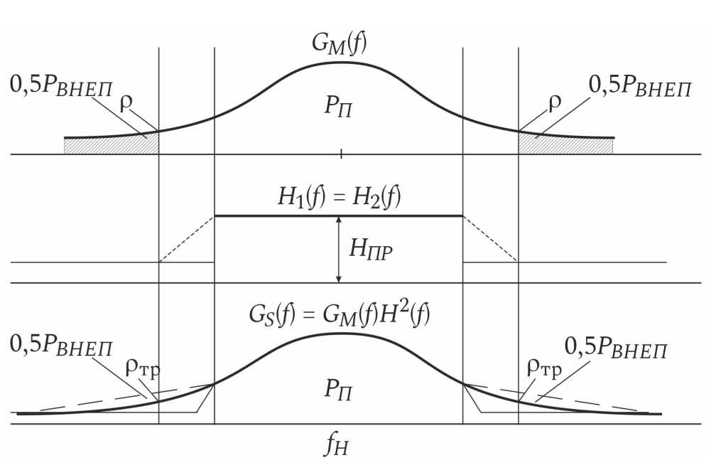 где – уровень внеполосных излучений за пределами необходимой полосы частот Понятие необходимой полосы частот связано с заменой исходного сигнала имеющего энергетический спектр и мощность на передаваемый сигнал с ограниченным по ширине энергетическим спектром и мощностью