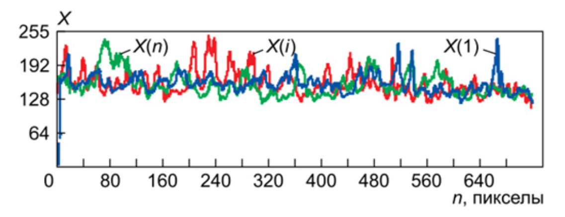 Рис. 1. Представление изображения в виде совокупности реализаций видеосигналов для различных строк изображения