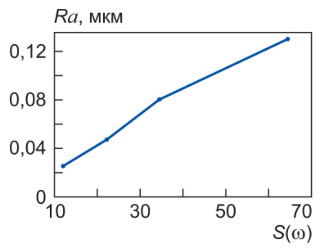 Рис. 5. Зависимость параметра шероховатости Ra от спектральных плотностей S(ω)